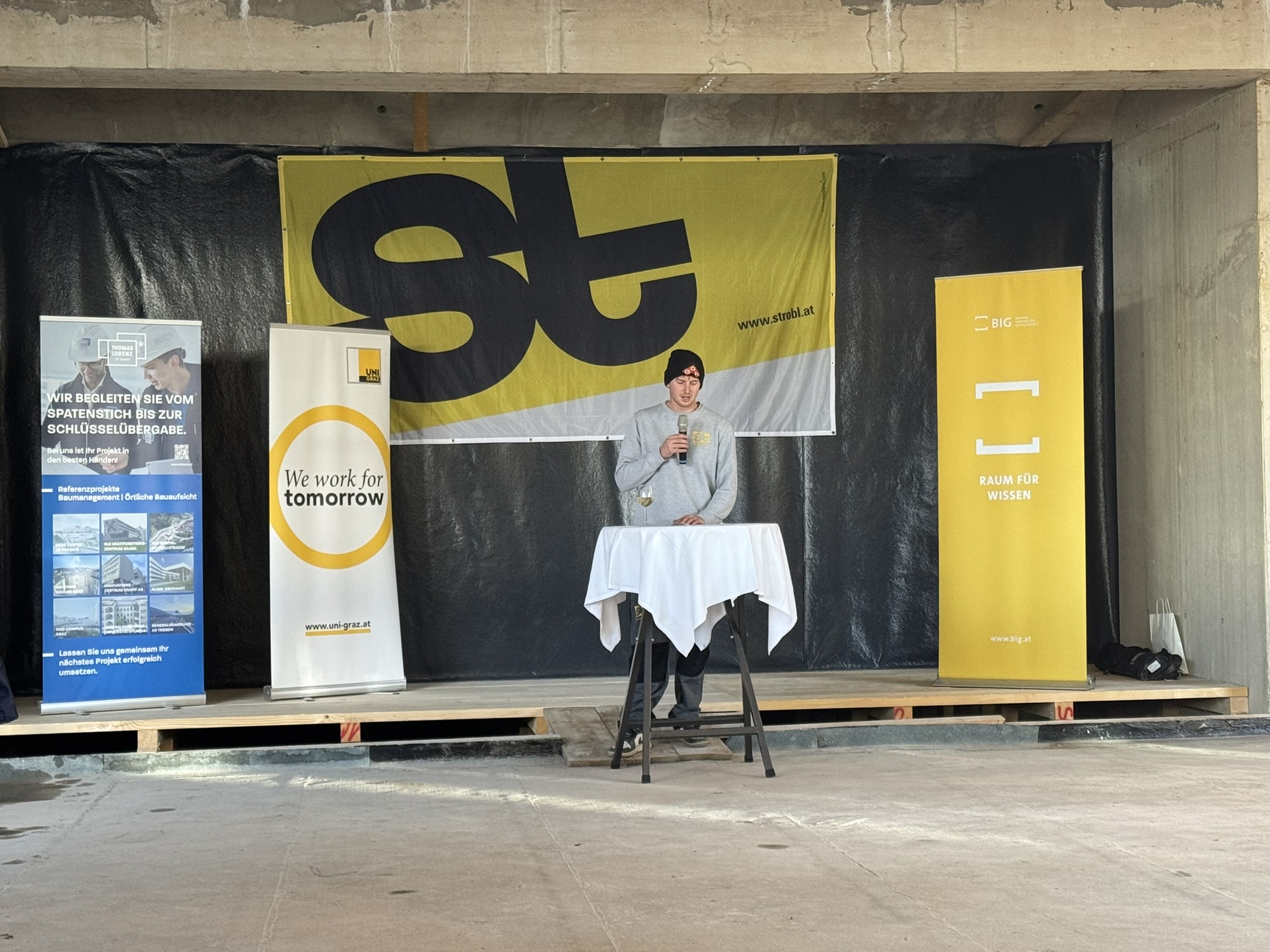 Momentan befinden sich die Arbeiten am Graz Center of Physics in einer intensiven Rohbauphase. Die Betonierarbeiten der Wände im Untergeschoß 2 (UG02) sind nahezu vollständig abgeschlossen, ebenso ist die Decke über dem UG02 bereits zu rund 70 % fertiggestellt. Im Untergeschoß 1 (UG01) liegen die Arbeiten an den Wänden bei etwa 50%, während die Decke über dem UG01 derzeit rund 40% erreicht hat.