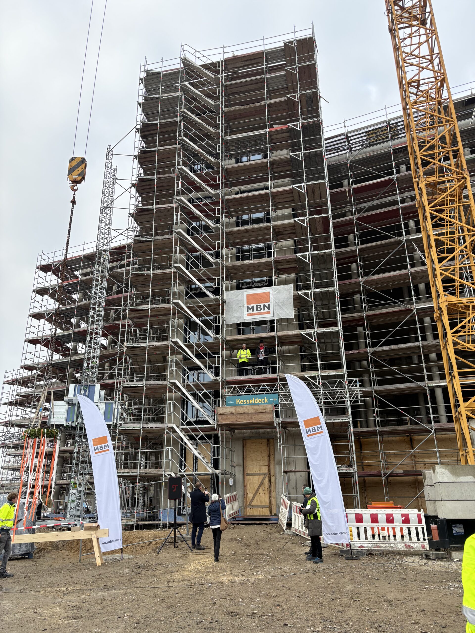 Unter Beisein der am Bau beteiligten Firmen sowie Vertreter:Innen der Bauherrnschaft Kesselborn GmbH & Co. KG i.Z.m.d. NEXT Generation Invest GmbH wurde das Richtfest gehörig gefeiert.