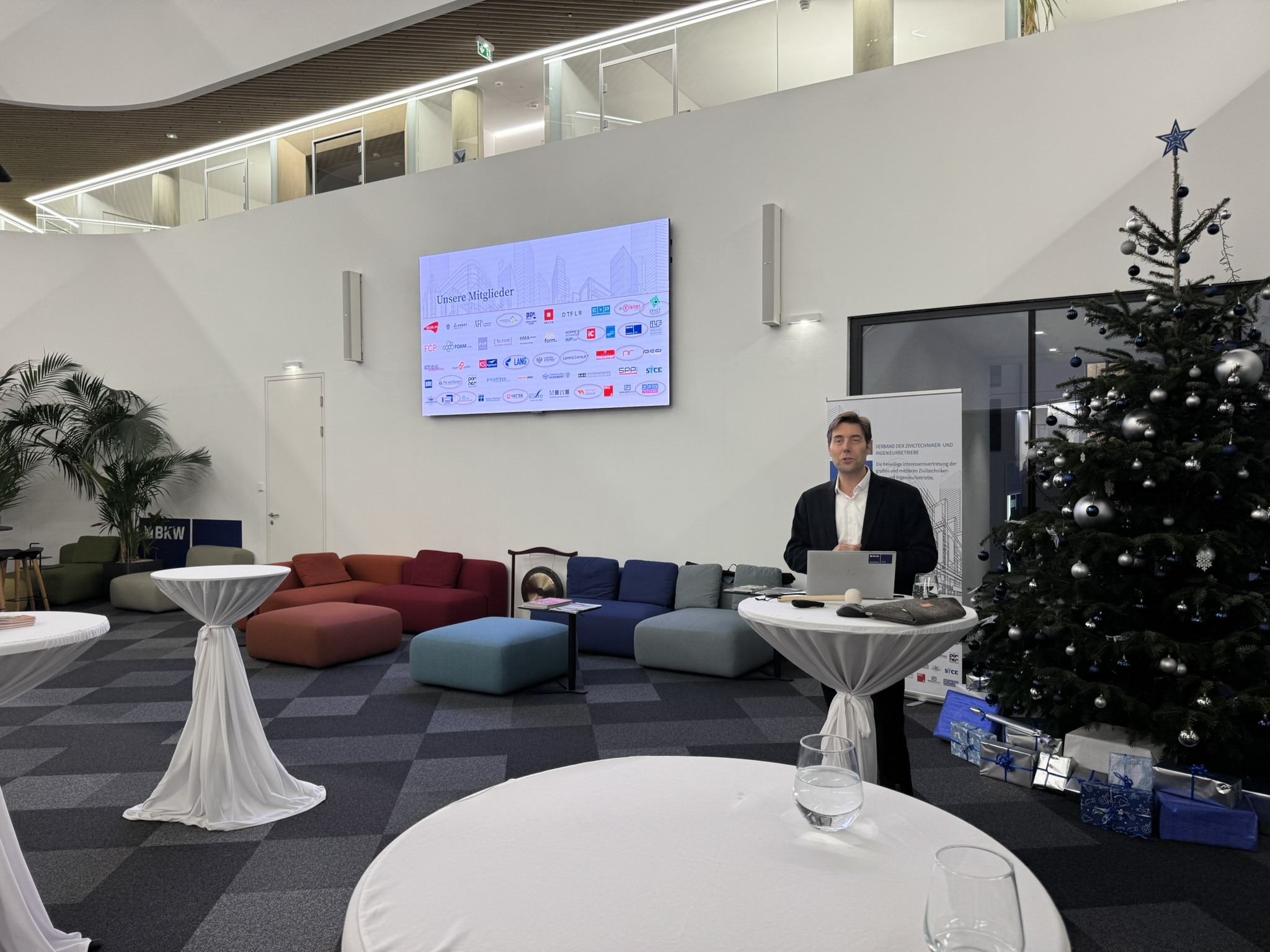 Im Anschluss moderierte Geschäftsführer Thomas Lorenz Vorträge zu den Herausforderungen und Innovationen bei Bestandsbauten. Ein Highlight war der Vortrag von Gruppenleiter Philipp Premm, der zusammen mit Geschäftsführer Alexander Walcher von der ASFINAG nachhaltige Ansätze zur Instandhaltung des österreichischen Autobahnnetzes vorstellte.