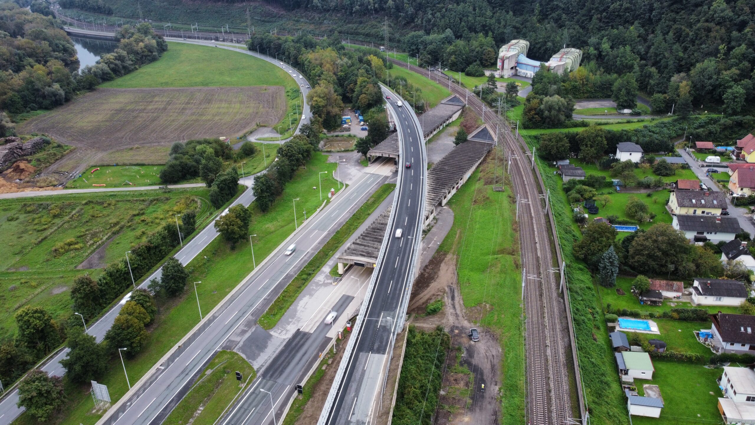 Parallel dazu erfolgte die Sanierung und Neuversetzung der rund 300 m langen Lärmschutzwand im Nahbereich. Diese Maßnahme trägt wesentlich zur Reduktion der Lärmbelastung für die Anrainerinnen und Anrainer bei.
