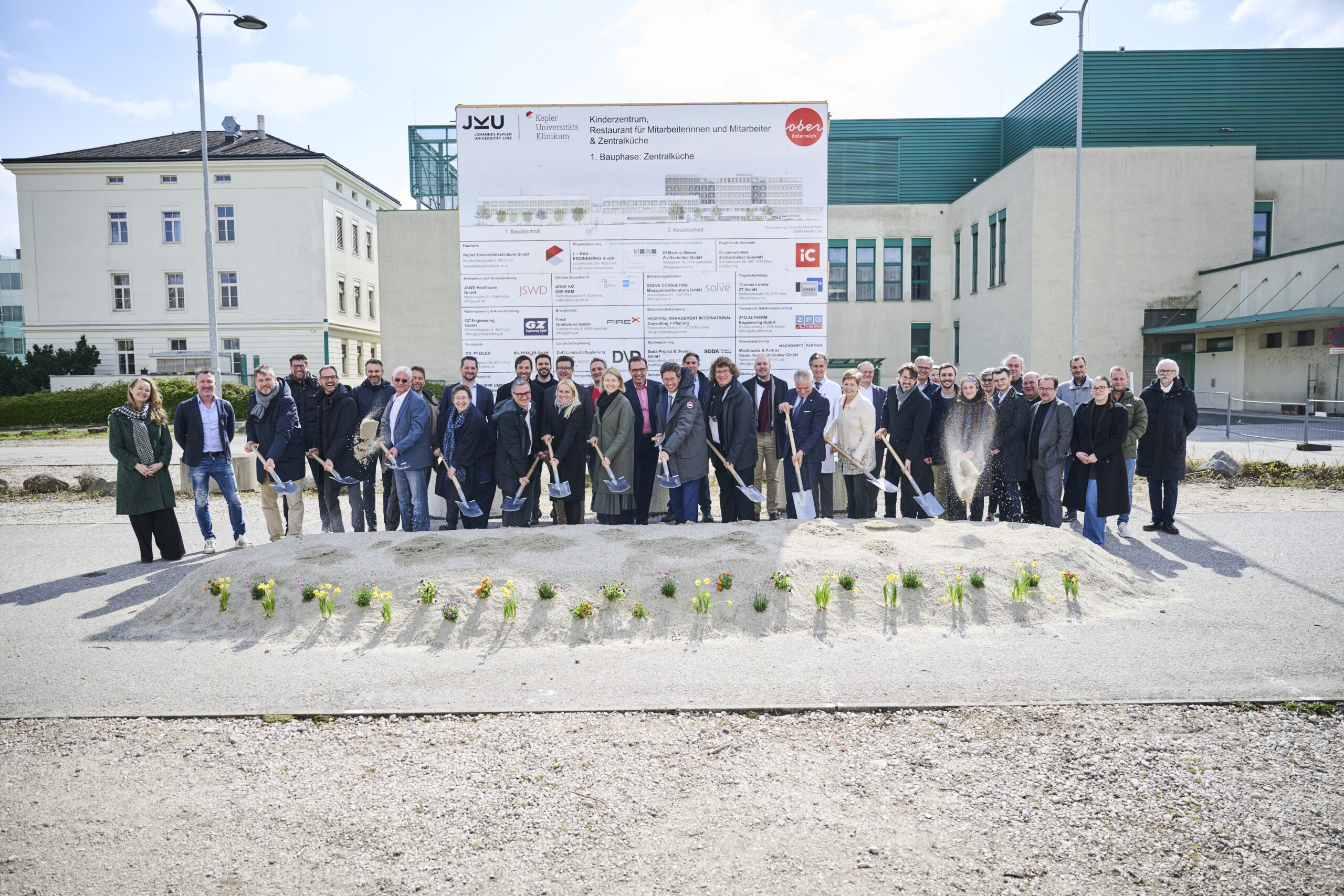 Am 27.03.2026 erfolgte der feierliche Spatenstich für den Neubau der Zentralküche am Gelände des Kepler Universitätsklinikums in Linz. Wir waren dabei.