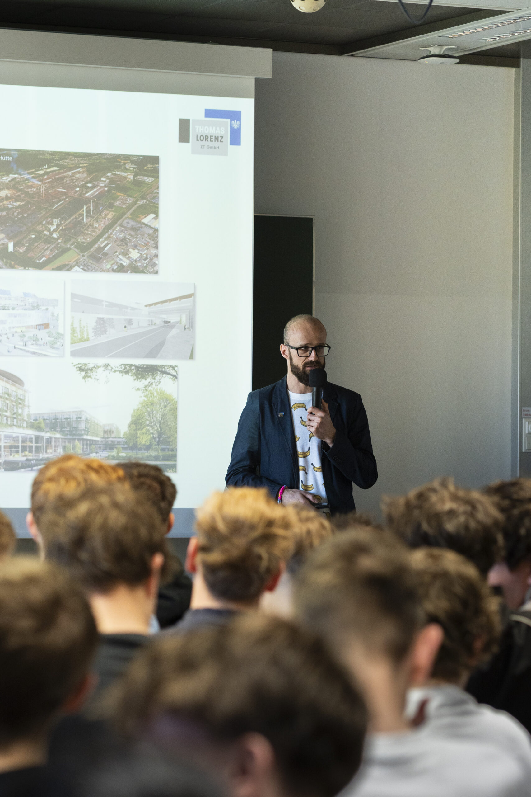 Unter dem Titel „Täglich Brot eines der führenden Ziviltechnikerbüros in der Steiermark“ stellte Gregor Schwarz, Abteilungsleiter für Stahl- Glas- und Fassadenbau, Projekte aus den letzten zwei Jahren vor, welche seine Abteilung bearbeiten durfte, und gab Einblick in die Arbeitsweise seines Teams. Den letzten zwei Jahrgängen der Zweige Hochbau, Tiefbau, Holzbau und Bauwirtschaft konnte somit ein guter Einblick vermittelt werden, was sie in Zukunft im Büro eines Ziviltechnikers im Bereich Stahl und Fassadenbau erwartet.