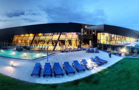 Die Aqualux Therme Fohnsdorf besticht neben ihrer außergewöhnlichen Erlebniswelt mit ihrer einzigartigen Architektur. Die Außenhülle wurde aufgrund der Fohnsdorfer Bergbautradition einem Kohleflöz nachempfunden.