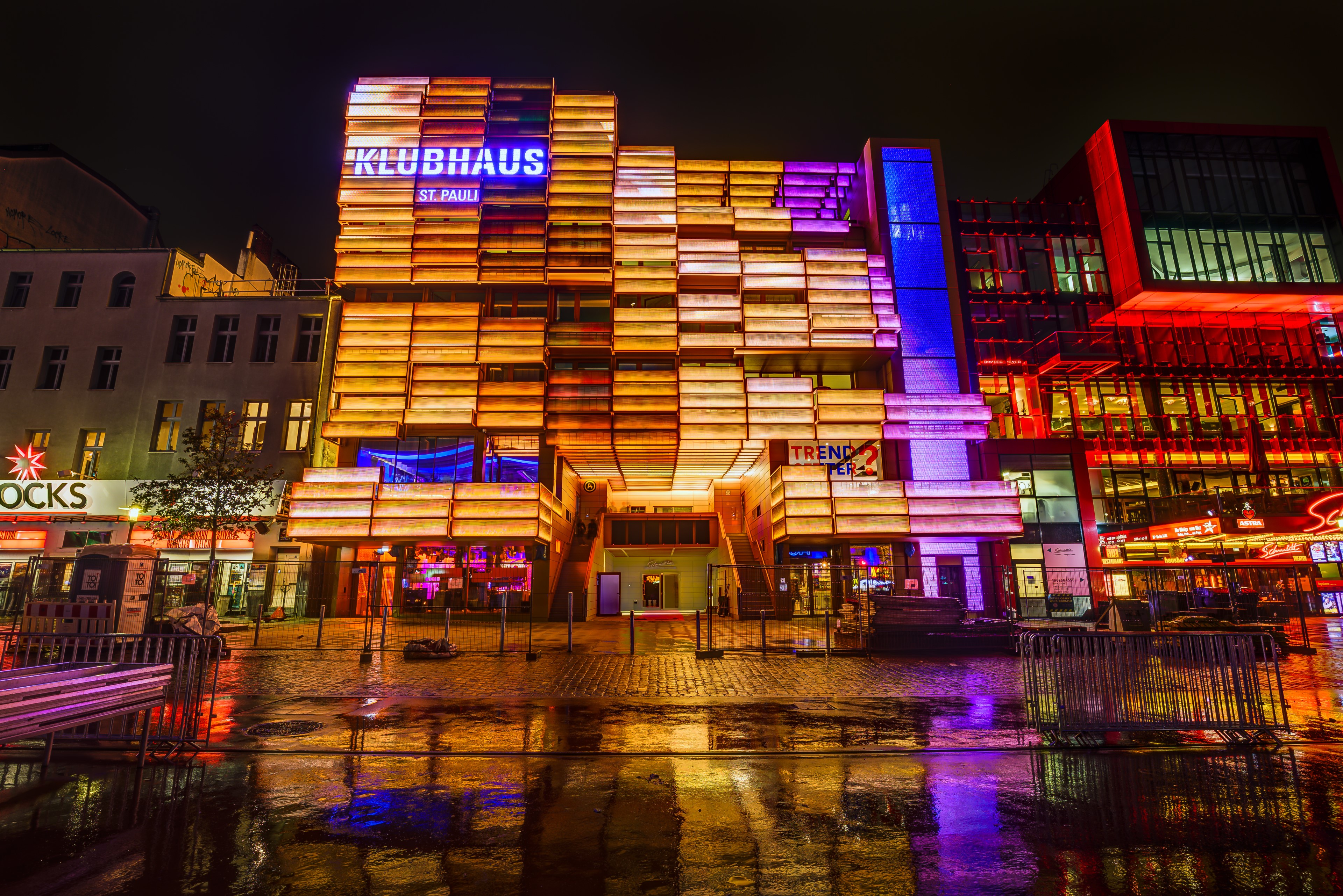 Mitten auf der Reeperbahn in Hamburg steht ein Veranstaltungszentrum für Livemusik, Entertainment und urbanes Arbeiten: Das Klubhaus St. Pauli. Das 6-geschossige Gebäude wurde mit einer Medienfassade mit LED – Technik ausgestattet, welche verschiedenste Werbemöglichkeiten und Beleuchtungsvariationen ermöglicht. Geplant und geliefert wurde die Fassade von der GIG Fassaden GmbH, die Fassadenstatiker von Thomas Lorenz lieferten das know-how für die Tragkonstruktion der vorgehängten Medienfassade in Modulbauweise betraut. Insgesamt wurden rund 15 Modultypen mit unterschiedlicher Größe, Ausladung und Situierung berechnet.