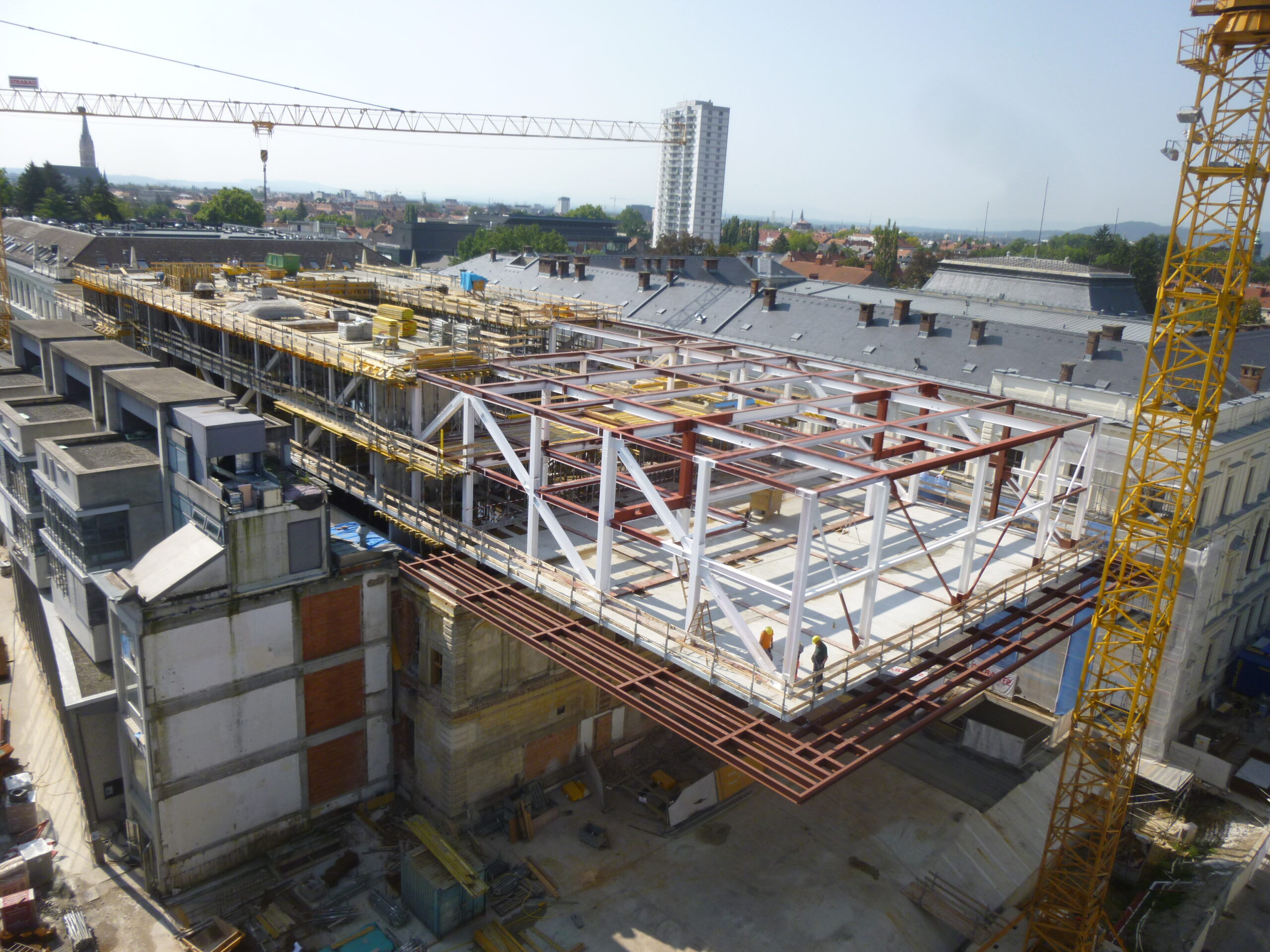 Im Zuge des Neubaus der neuen Universitätsbibliothek in Graz kam es zu unerwarteten Abweichungen und Verformungen an der Stahlkonstruktion. Diese befindet sich in 14 m Höhe und kragt 20 Meter weit über den Vorplatz hinaus. Die Thomas Lorenz ZT GmbH war mit der Steuerung und technischen Begleitung der Sanierung des Stahltragwerkes betraut.