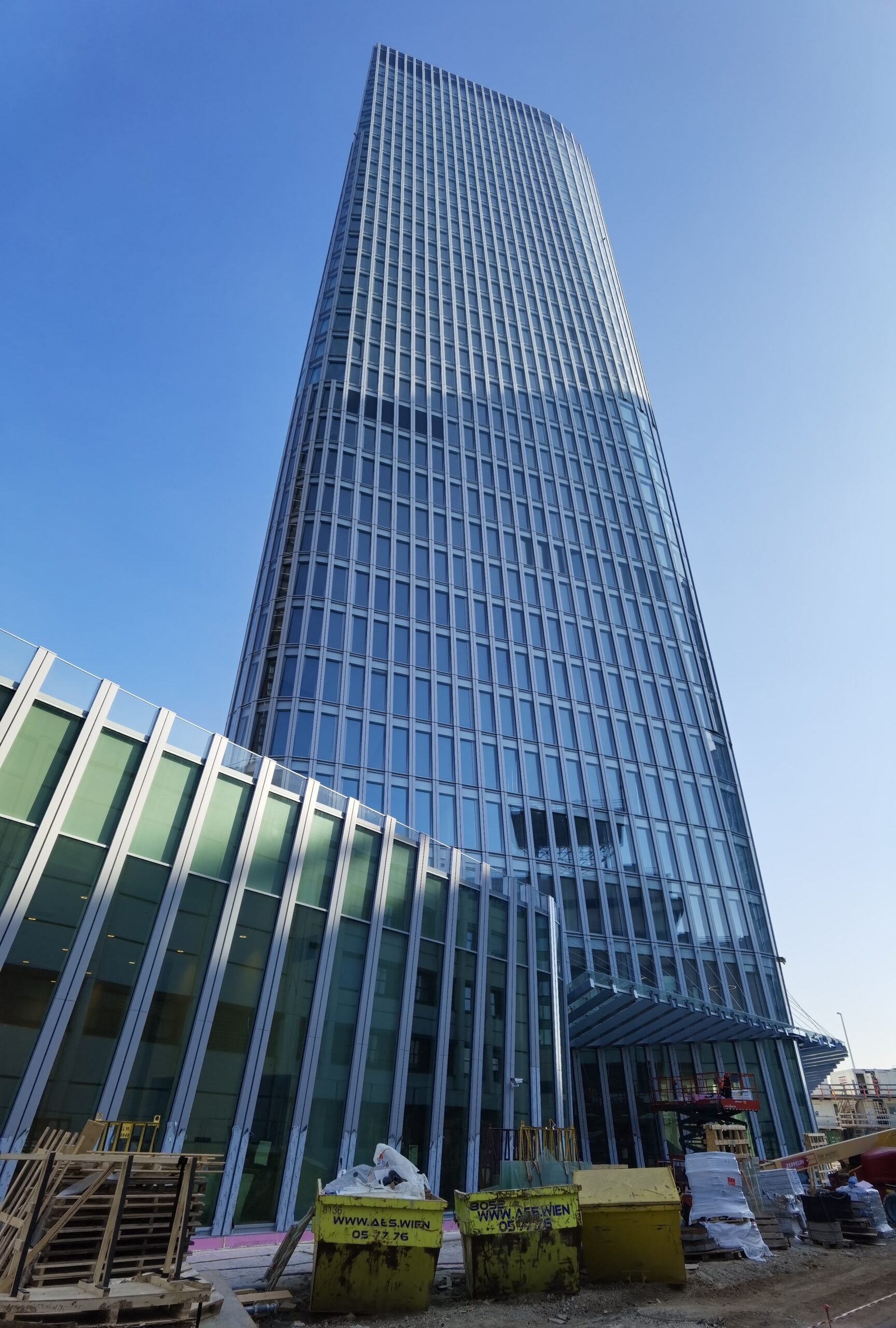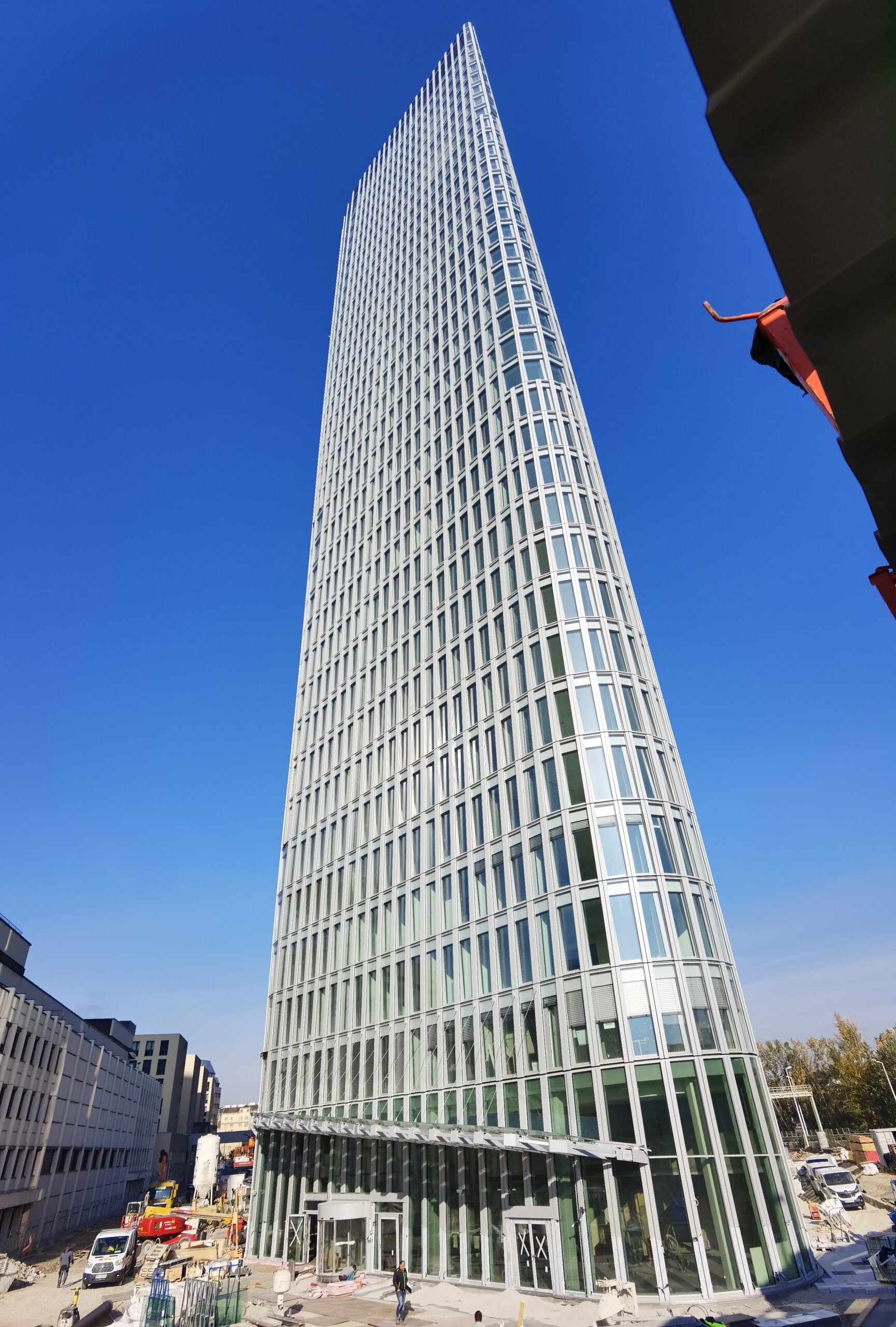 Der Austro Tower ist mit seinen 135 m der höchste Büroturm am Donaukanal in Wien. Auf rund 20.000 m² Fassadenfläche wurden eine 2-schalige Elementfassade und eine Pfosten-Riegel-Fassade errichtet. Besonderheit: Die innere Schale der Elementfassade ist dabei lotrecht, die Außenschale folgt der Kontur des Turms. Die Spannweite der P-R-Fassade im EG beträgt bis zu 8 m. Die Statik für die Fassade hat das Team von Thomas Lorenz für die ausführende Firma Metallica Stahl- und Fassadentechnik GmbH aus Weiz erstellt.
