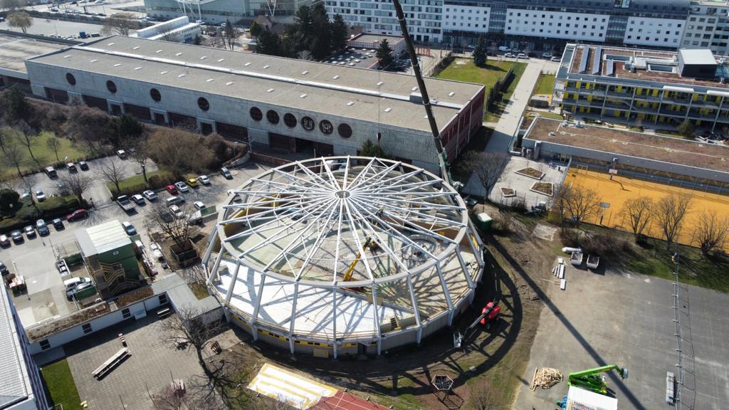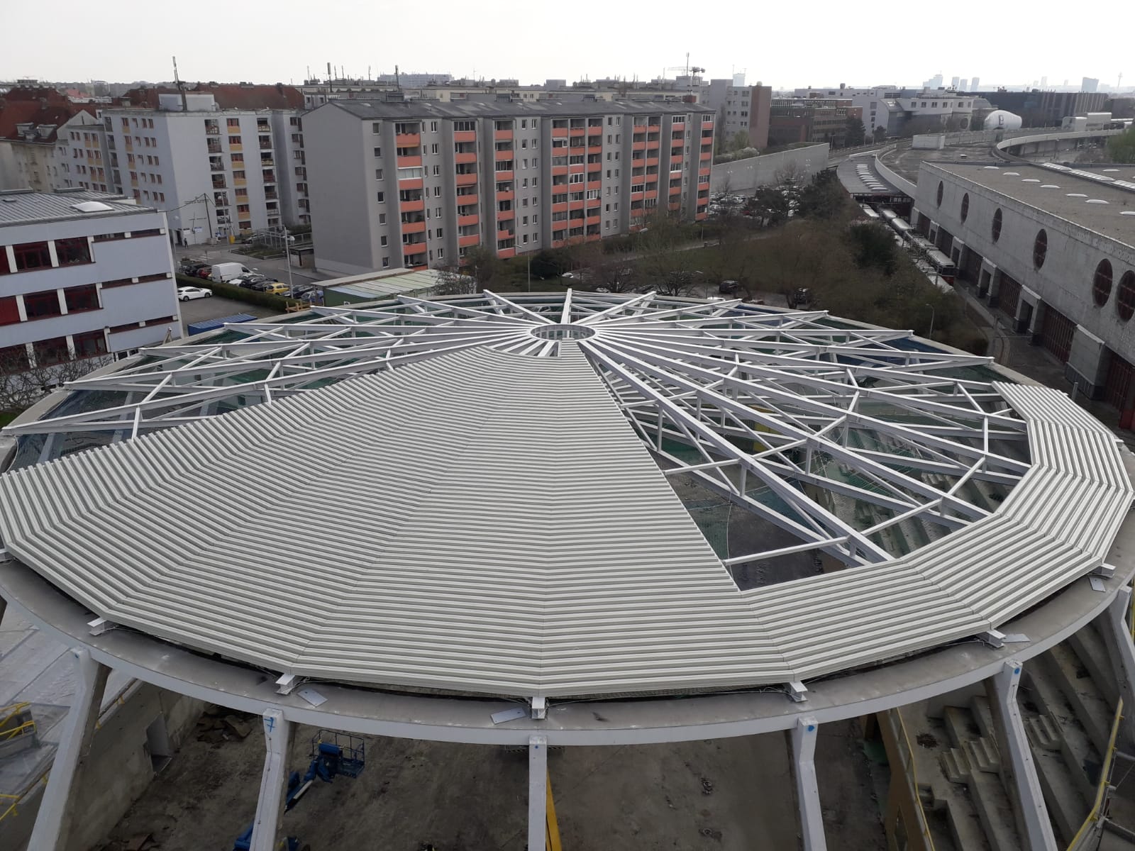 Im Zuge der Generalsanierung der Mehrfachturnhalle der MA51 in der Steigenteschgasse in Wien wurde das bestehende Membrandach demontiert und durch eine Stahltragkonstruktion ersetzt.