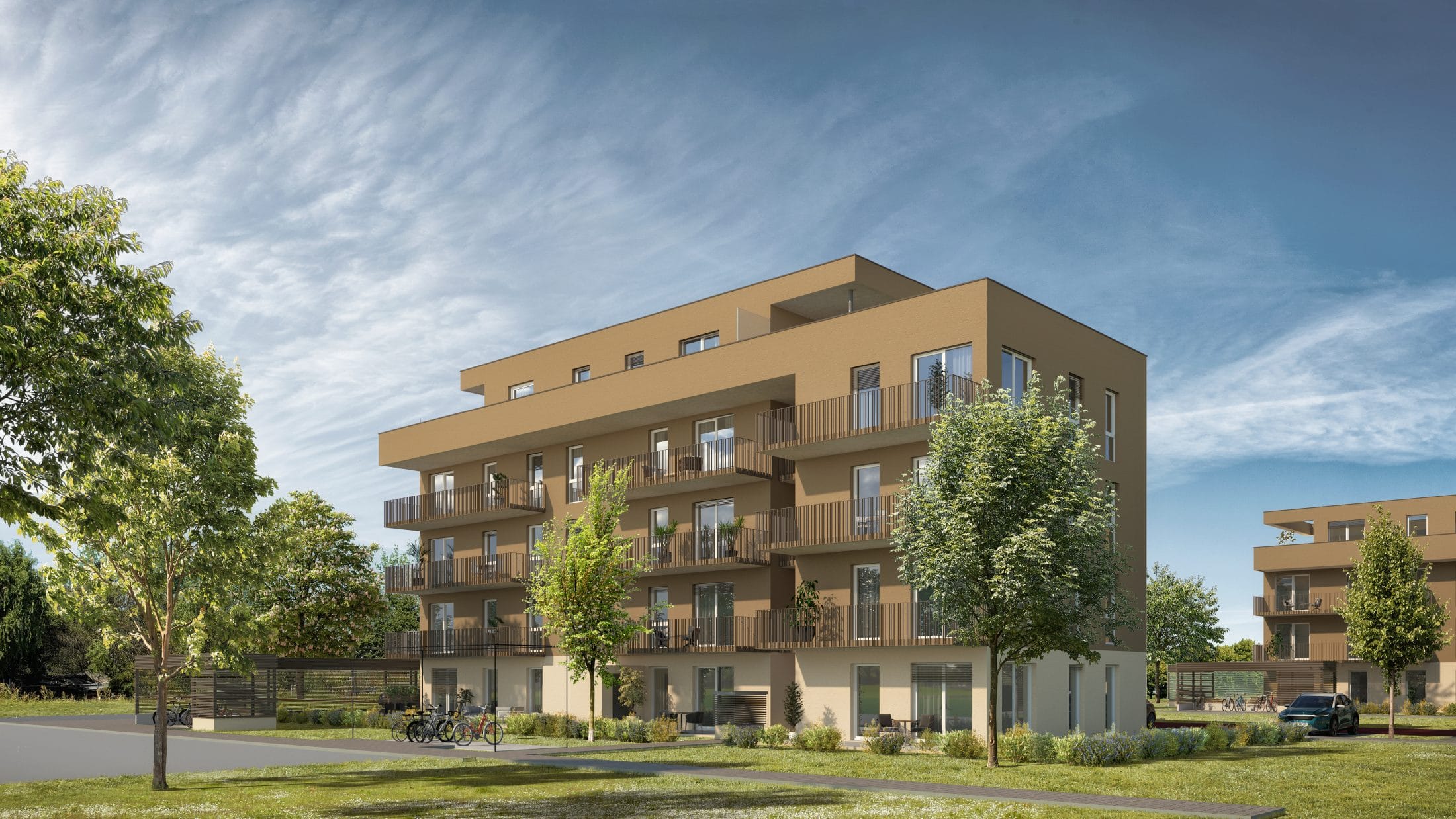 Die Firma Strobl Bau aus Weiz ist bekannt für ihre Wohnbaulinie. Das ggst. Projekt in Kalsdorf umfasst 117 Wohneinheiten, aufgeteilt auf 11 oberirdische Baukörper mit gemeinsamer Tiefgarage. Als besondere Herausforderung in Planung und Bau stellte sich der hohe Grundwasserspiegel heraus.