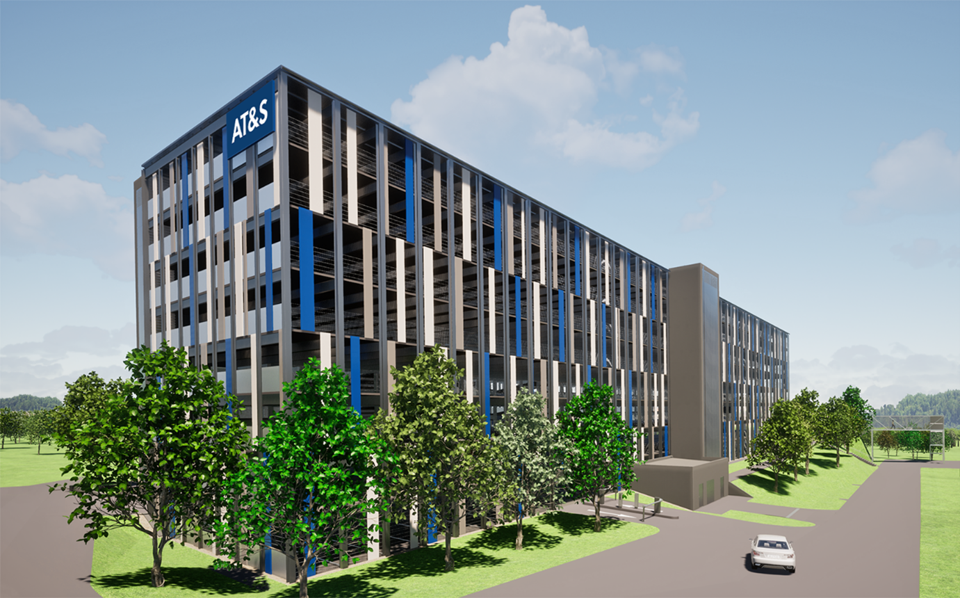 Die Austria Technologie & Systemtechnik AG (kurz AT&S) Leoben ist einer der globalen Technologieführer im Bereich Leiterplatten und IC Substrate. Nachdem der Standort Leoben stetig erweitert wird, wurde 2021 mit der Planung einer Hochgarage für die MitarbeiterInnen in direkter Nähe zu Werk- und Büroflächen begonnen. Es sind insgesamt 991 Parkplätze in zwei Bauabschnitten auf 15 Split-Level vorgesehen. Mit dem Bau wurde im Frühjahr 2024 begonnen, der GU-Auftrag wurde an Goldbeck-Rhomberg vergeben. Für das Bauvorhaben wurde die Thomas Lorenz ZT GmbH mit der Generalplanung, Hochbauplanung und örtlichen Bauaufsicht beauftragt. Die Planung und Abwicklung erfolgen nach der bewährten BIM-Methode.