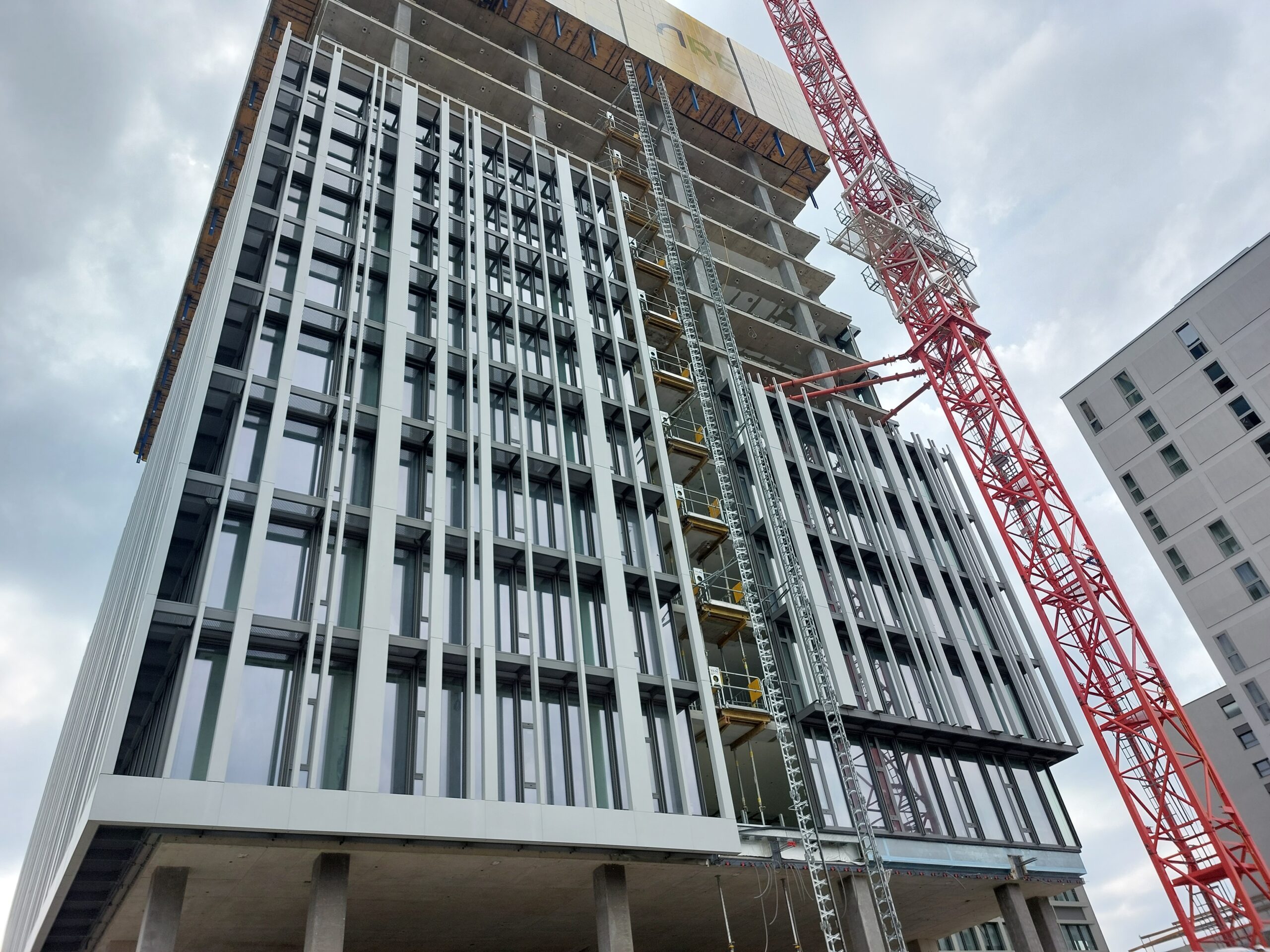 Insgesamt werden rund 10.000 m² an Fassadenfläche bestehend aus einer Elementfassade vom 3. – 16. Geschoss mit vorgehängten Balkonen, einer P-R-Fassade im Sockel sowie 21.500 m² an außen liegenden über die gesamte Turmhöhe verlaufende Lisenen statisch-konstruktiv bearbeitet.